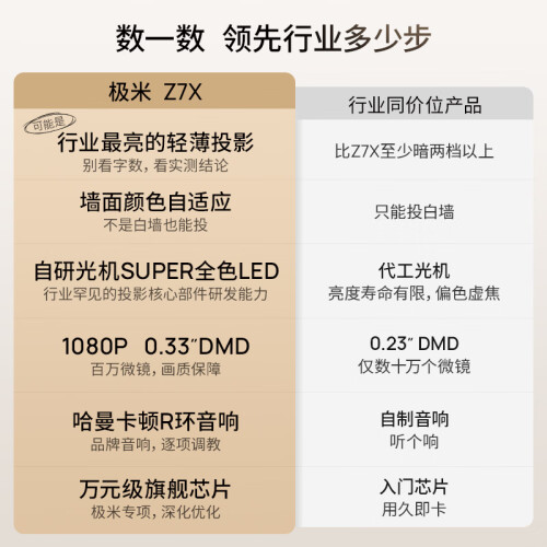 当前的位置: 首页 > 今日值得买 > 极米Z7X 全面升级 投影仪家用 轻薄旗舰投影机 (万元级CPU 墙面颜色自适应 哈曼卡顿原装音响 真实高亮)