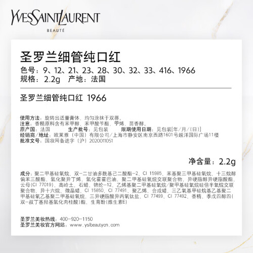 当前的位置: 首页 > 今日值得买 > YSL圣罗兰小金条口红1966 2.2g 哑光持久 唇膏礼盒 生日礼物送女友
