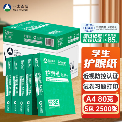 当前的位置: 首页 > 今日值得买 > 亚太森博百旺 拷贝可乐(绿) 学生护眼纸试卷打印纸草稿纸【近视防控认证】本色A4 80g 5包/箱(共2500张)