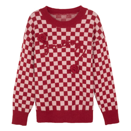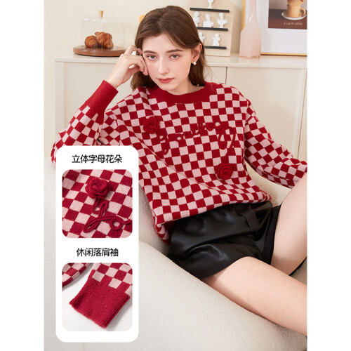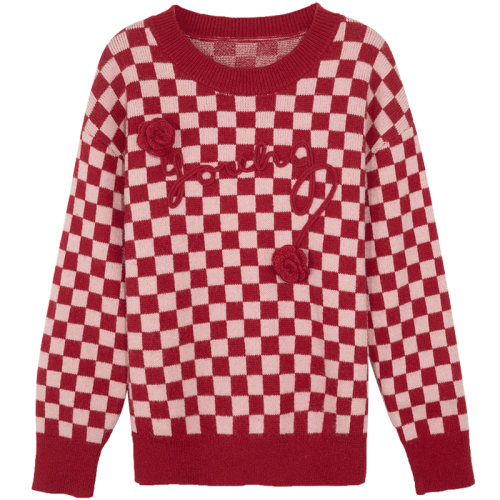 当前的位置: 首页 > 今日值得买 > 三彩2022秋冬季新款棋盘格绣花毛衣立体花朵针织衫美式复古时尚 红色 160/84A/M