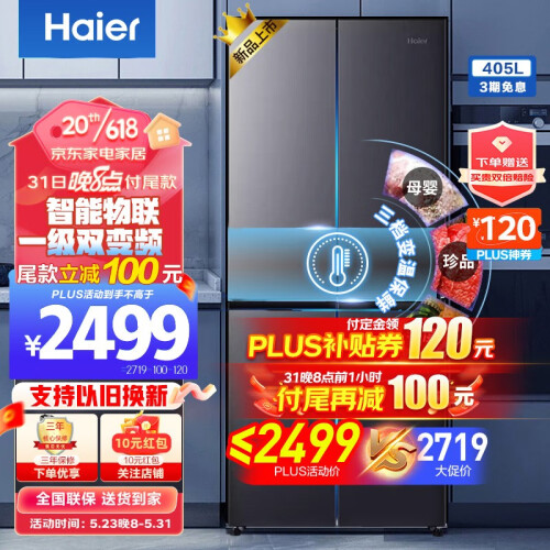 当前的位置: 首页 > 今日值得买 > 海尔冰箱十字对开门四开门多门双变频风冷无霜超薄家用电冰箱一级能效超大容量双开门以旧换新 405升+三档变温+DEO净味