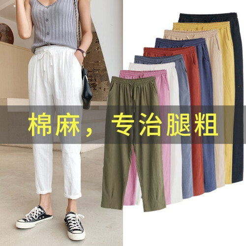 当前的位置: 首页 > 今日值得买 > 灵镜 舒适棉麻休闲裤女夏季九分裤小个子高腰宽松显瘦百搭直筒哈伦裤 黑色 2XL建议125-135斤