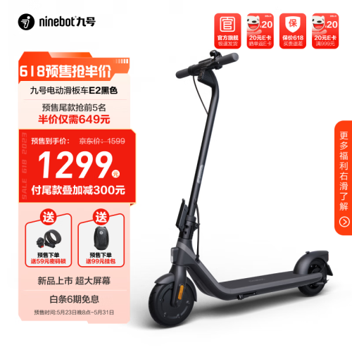 当前的位置: 首页 > 今日值得买 > Ninebot九号电动滑板车E2 高弹大轮胎减少爆胎 成人学生便携智能可折叠电动车 前减震防滑体感车 滑板车E2黑色【618预售抢限量5折】
