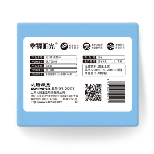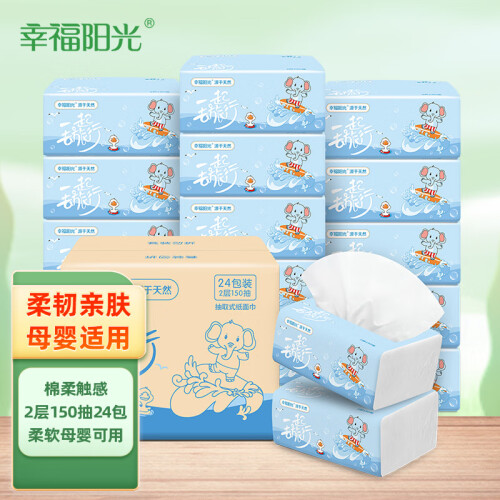 当前的位置: 首页 > 今日值得买 > 幸福阳光 抽纸 棉柔2层150抽24包软抽 家庭实惠装母婴可用餐巾纸