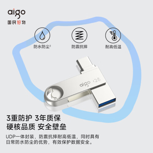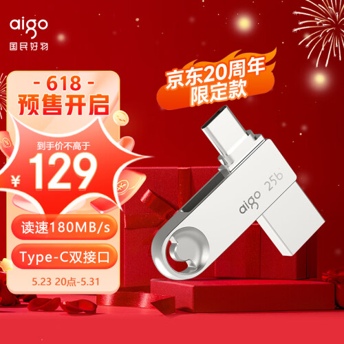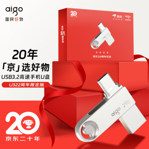 当前的位置: 首页 > 今日值得买 > 爱国者(aigo)256GB JD-20周年纪念U盘 Type-C USB3.2 手机U盘 银色 读速180MB/s 双接口手机电脑用