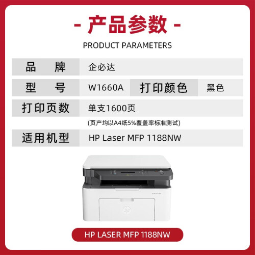 当前的位置: 首页 > 今日值得买 > 企必达 1188W硒鼓适用惠普1188w硒鼓 1188w打印机墨盒墨粉晒鼓墨粉盒W1660A 1600页--硒鼓1支