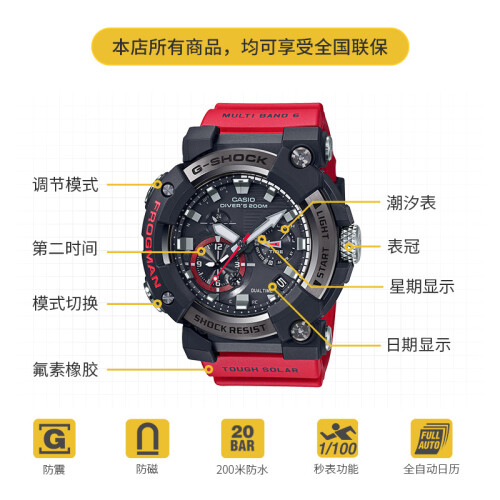 当前的位置: 首页 > 今日值得买 > 卡西欧(CASIO) G-SHOCK X Frogman合作款 运动防水男士手表 GWF-A1000-1A4PR-200米防水