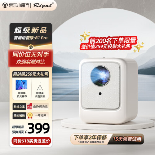 当前的位置: 首页 > 今日值得买 > 瑞格尔(Rigal)B1 Pro 投影仪家用智能便携投影机卧室手机投影电视(1080P分辨率 电子梯形校正 AI语音)