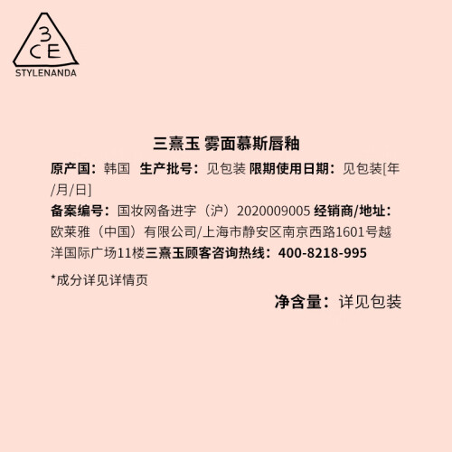 当前的位置: 首页 > 今日值得买 > 3CE雾面慕斯唇釉口红摩卡红棕STAYAWAY奶油砖橘生日礼物