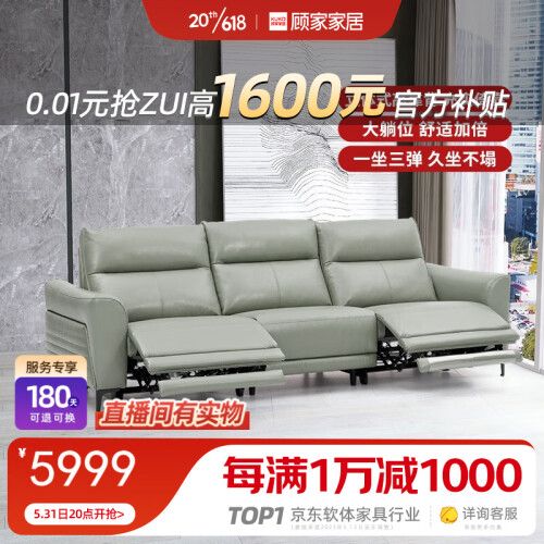 当前的位置: 首页 > 今日值得买 > 顾家家居(KUKA)客厅皮沙发电动轻奢皮沙发组合意式小户型客厅家具西西里6055 30天发货晨雾绿3双2电动2.73m
