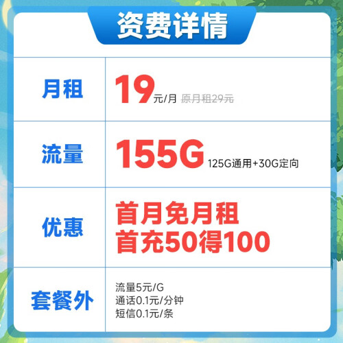 当前的位置: 首页 > 今日值得买 > 中国电信手机卡阳光卡 纯流量卡 电话卡全国通用5G低月租 月兔卡19元155G