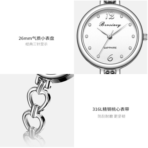 当前的位置: 首页 > 今日值得买 > 波西尼(BERSINEY) 女士气质石英表休闲腕表时尚轻奢欧美表刻字防水节日礼物送女友 BL8105.GGW叶簇系列