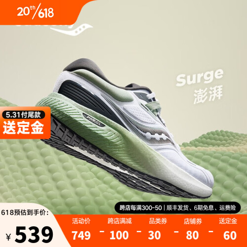 当前的位置: 首页 > 今日值得买 > Saucony【预售】索康尼Surge澎湃男跑鞋减震透气男女同款跑步运动鞋子 白绿 42