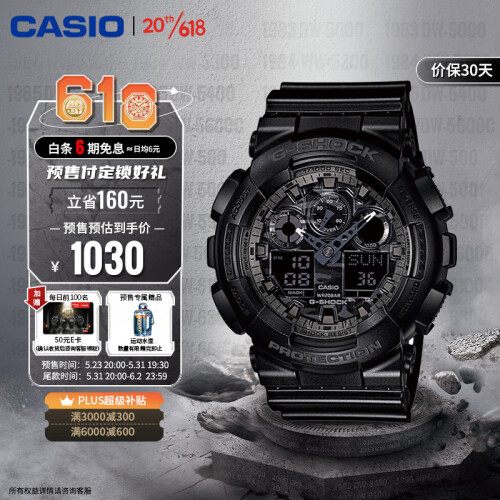 当前的位置: 首页 > 今日值得买 > 卡西欧(CASIO)G-SHOCK YOUTH灰色迷彩男士学生运动电子日韩手表GA-100CF-1A