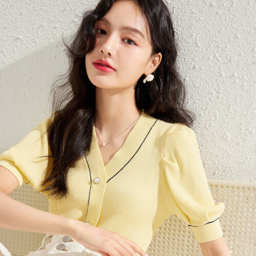 当前的位置: 首页 > 今日值得买 > 秋水伊人小清新休闲毛针织衫夏季新款女装舒适V领短袖休闲基础百搭半袖女 黄色 L