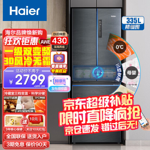 当前的位置: 首页 > 今日值得买 > 海尔(Haier)冰箱法式335升双开门四开门多门一级双变频嵌入式家用电冰箱风冷无霜超薄银河系列 335升银河灰+一级能效+三档变温+WIFI智控