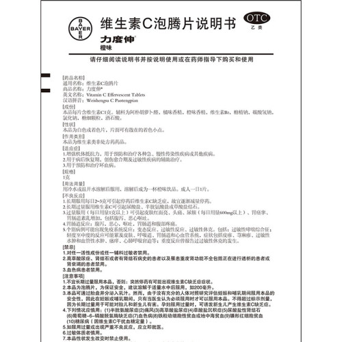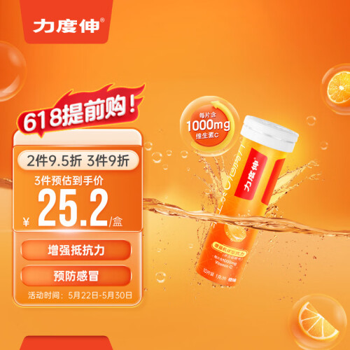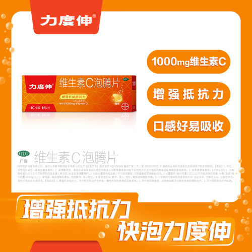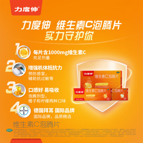 当前的位置: 首页 > 今日值得买 > 拜耳力度伸维生素c泡腾片 橙味1g*10片 补充VC成人 预防感冒 增强抵抗力 每片含1000mg维c