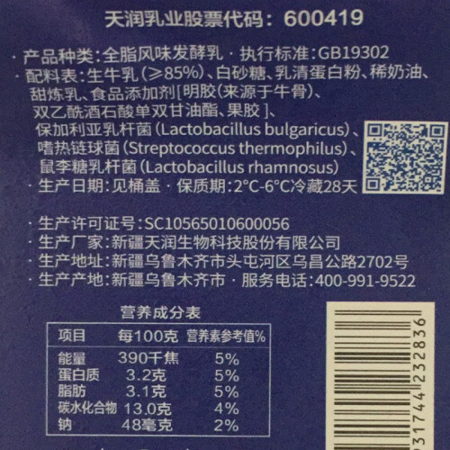 当前的位置: 首页 > 今日值得买 > 天润(terun) 天润新疆网红酸奶原味浓缩桶装酸奶润康方桶老酸奶1kg桶新鲜经典 1kg方桶*1桶