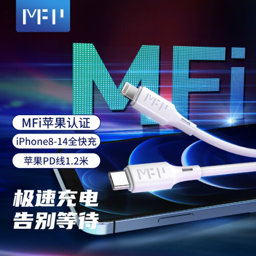 米量(MFPower)MFi认证苹果充电器iphone14快充套装PD20W充电头适用苹果14ProMax/13/12/11手机Type-C数据线iPad 苹果MFi认证PD快充 白色1.2米