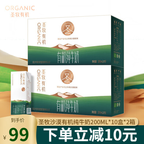 当前的位置: 首页 > 今日值得买 > 圣牧沙漠有机纯牛奶200ml*10盒*2箱儿童学生老人营养早餐端午节送礼盒 家庭自饮