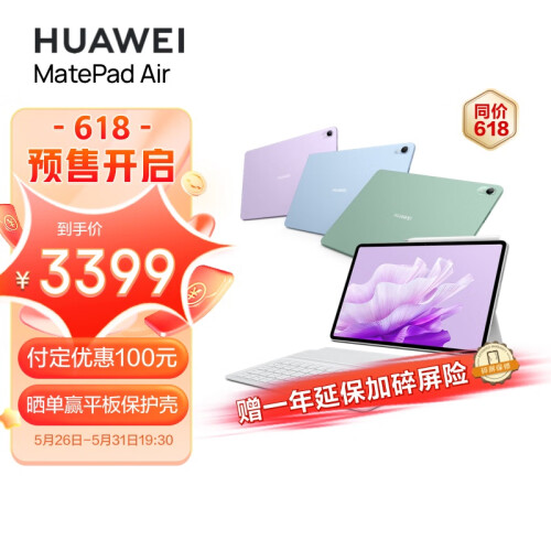 当前的位置: 首页 > 今日值得买 > 华为平板电脑MatePad Air 11.5英寸 144Hz高刷护眼全面屏 2.8K超清 移动办公影音娱乐平板 12+256GB 云锦白