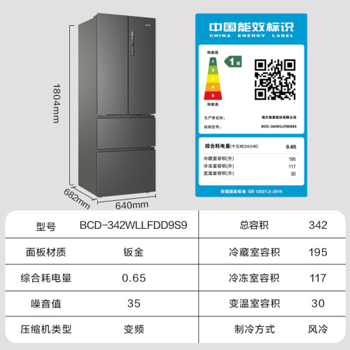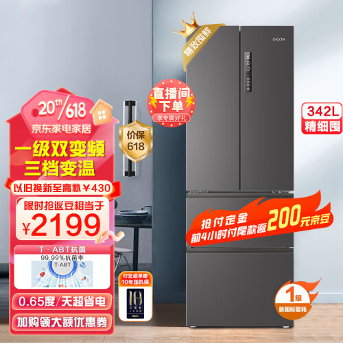 当前的位置: 首页 > 今日值得买 > Leader342升风冷无霜一级能效双变频法式四门多门超薄嵌入式家用电冰箱海尔智家出品BCD-342WLLFDD9S9