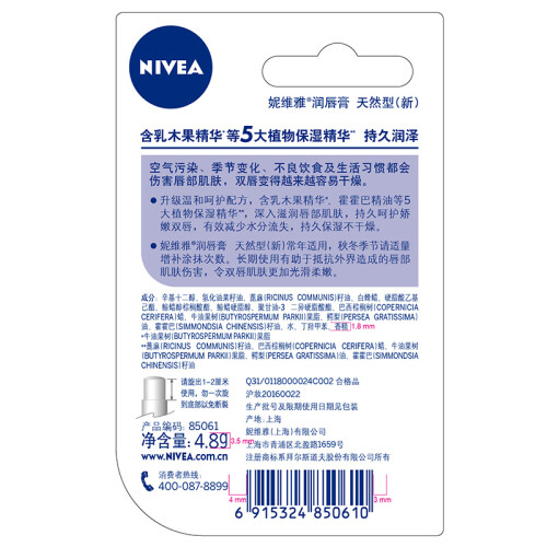 当前的位置: 首页 > 今日值得买 > 妮维雅(NIVEA) 男士女士天然型润补水保湿护唇膏4.8g