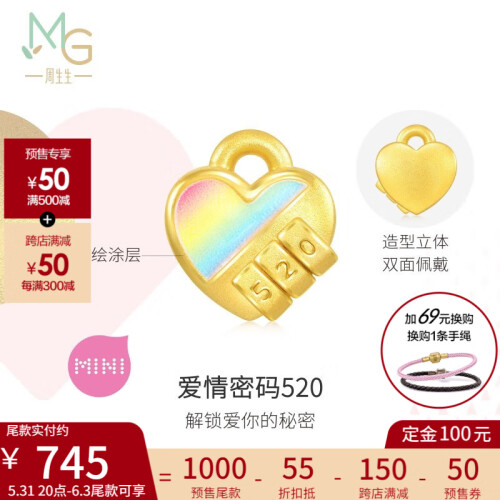 当前的位置: 首页 > 今日值得买 > 周生生金转运珠 Charme爱情童话 足金爱情密码520心锁串珠 93511C定价
