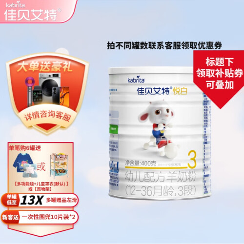 当前的位置: 首页 > 今日值得买 > 佳贝艾特(Kabrita)婴儿羊奶粉 悦白 悠装pro 荷兰原装原罐进口 悦白3段400g