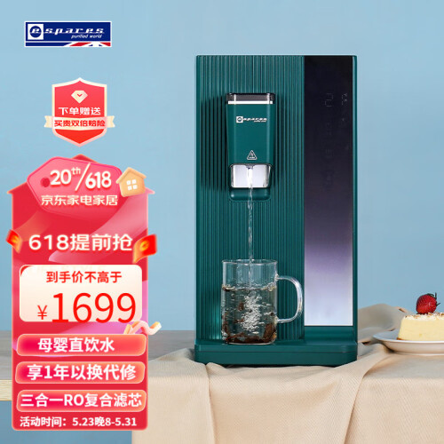 当前的位置: 首页 > 今日值得买 > eSpares 易思倍 台式即热净饮机 RO反渗透免安装净水器 7档水温调节母婴直饮水 橄榄绿