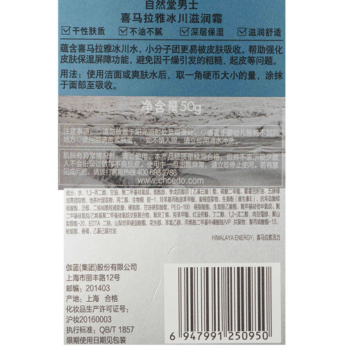 当前的位置: 首页 > 今日值得买 > 自然堂(CHANDO)男士喜马拉雅冰川滋润霜50g(深层保湿 滋润舒适)
