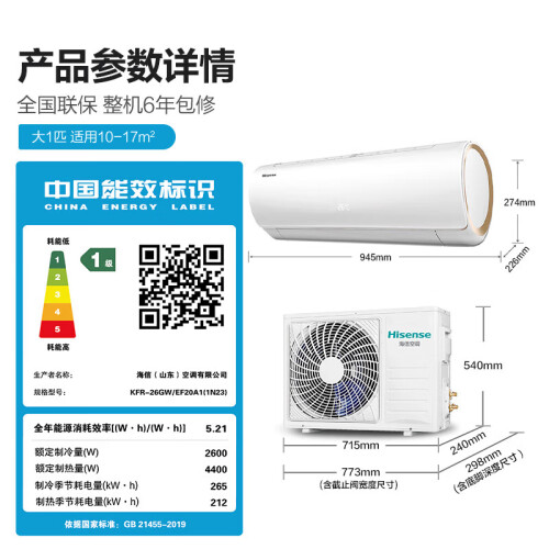 当前的位置: 首页 > 今日值得买 > 海信(Hisense)空调大1匹空调挂机自然风新一级变频智能自清洁KFR-26GW/EF20A1