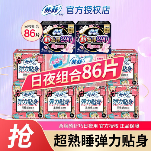 当前的位置: 首页 > 今日值得买 > 苏菲卫生巾日用+夜用套装日本尤妮佳姨妈巾弹力贴身超熟睡纯棉230+290 日夜组合装86片