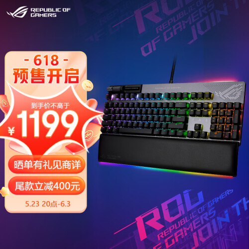 当前的位置: 首页 > 今日值得买 > ROG耀光2幻 机械键盘 有线游戏键盘 客制化键盘 NX冰川蓝轴 RGB背光 104键 全键热插拔 PBT键帽带掌托黑色