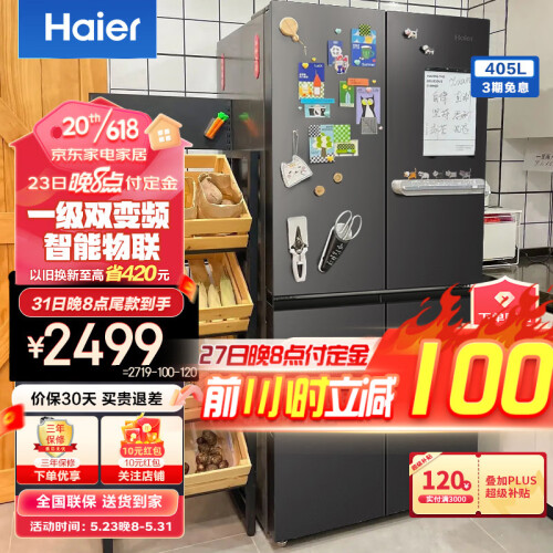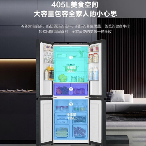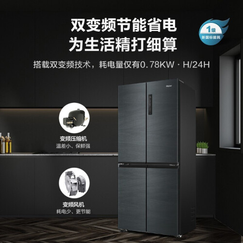 当前的位置: 首页 > 今日值得买 > 海尔冰箱四开门 405升一级能效双变频双循环净味无霜超薄 十字对开门T型门四门双开门多门家用智能冰箱 405L星蕴银+1级双变频+三档变温+DEO净味 双对开门