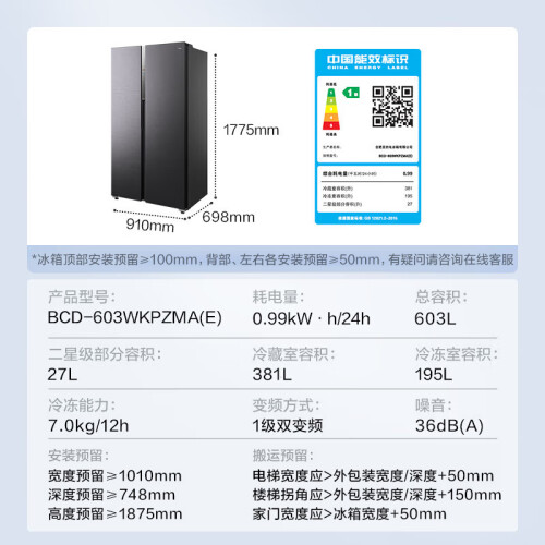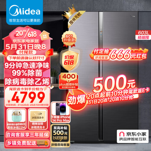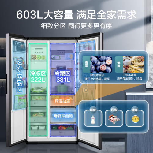 当前的位置: 首页 > 今日值得买 > 美的(Midea)9分钟急速净味603升变频一级智能语音对开双开门冰箱大容量家用BCD-603WKPZMA(E) 【601升级款】