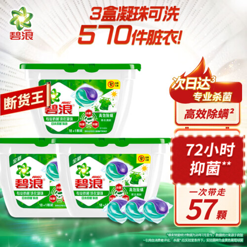 当前的位置: 首页 > 今日值得买 > 碧浪 Ariel 洗衣凝珠强去渍 杀菌抑菌高效除螨草本清新香57颗