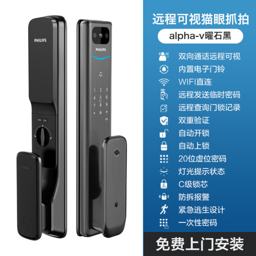 当前的位置: 首页 > 今日值得买 > 飞利浦Alpha 指纹锁 家用智能门锁全自动密码锁推拉式防盗门锁电子锁 年度升级款【远程可视猫眼】
