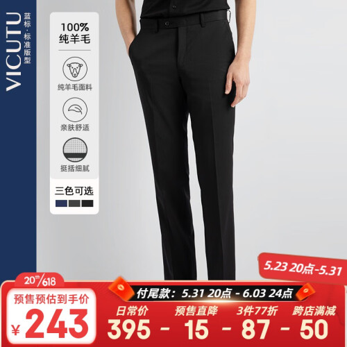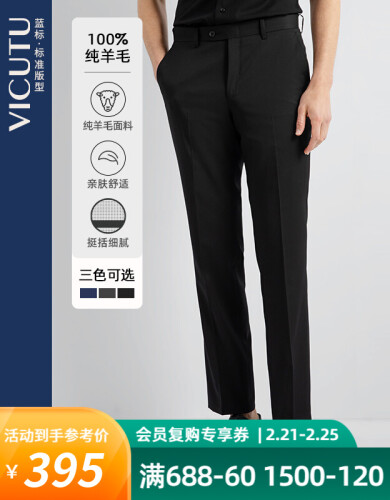 当前的位置: 首页 > 今日值得买 > 威可多(VICUTU)【预售】男士单西裤纯羊毛商务休闲纯色百搭西装长裤VBS88322309 黑色 185/96B-2.88尺