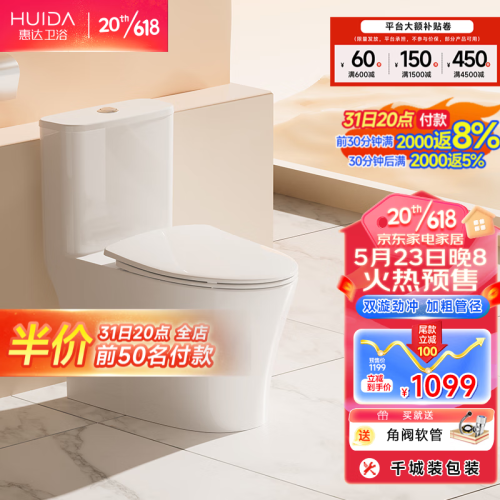 当前的位置: 首页 > 今日值得买 > 惠达(HUIDA) 惠达卫浴双旋式卫生间家用陶瓷马桶连体座便器6360 双漩劲冲-6360 400mm坑距(验货再签收)