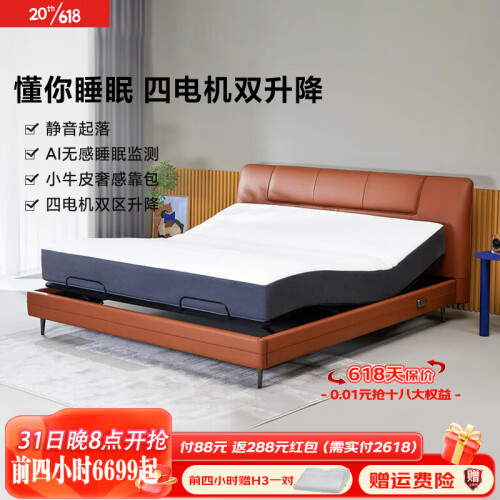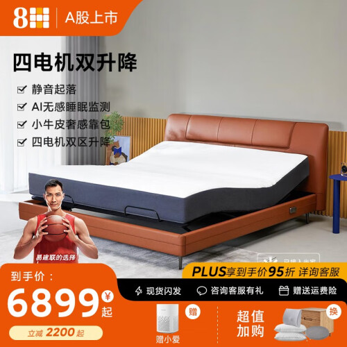 当前的位置: 首页 > 今日值得买 > 8HSLEEP Feel真皮智能电动床XPRO 语音控制双人可升降床带床垫 智仕灰 1.8套装(真皮床+弹簧20CM床垫)