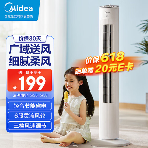 当前的位置: 首页 > 今日值得买 > 美的(Midea)【轻音节能】定时塔扇家用电风扇大风量无叶风扇轻音电扇远柔风落地扇台式摇头小型风扇 ZAF09MA