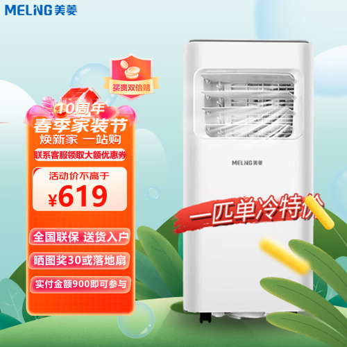 当前的位置: 首页 > 今日值得买 > 美菱(MeiLing)可移动空调大一匹1.5p匹2匹单冷暖便携一体机小型家用立式免安装 1匹单冷活动款