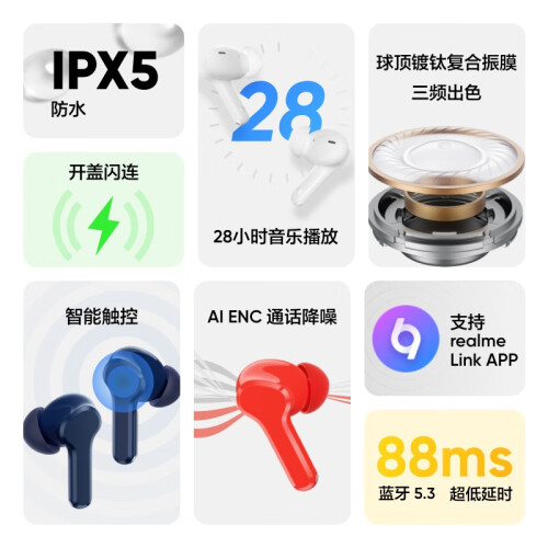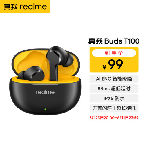当前的位置: 首页 > 今日值得买 > 真我(realme) Buds T100真无线蓝牙耳机通话降噪长续航28h闪充低延时华为苹果手机通用 朋克黑