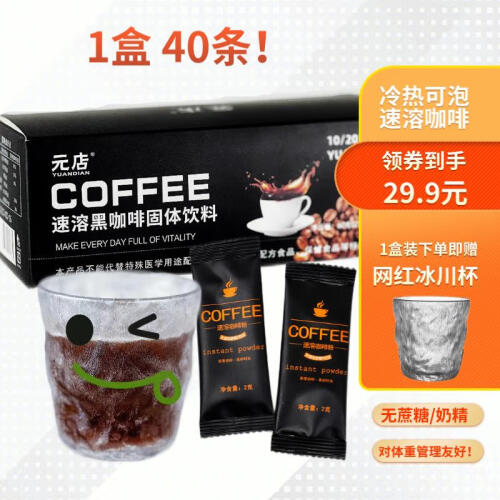 当前的位置: 首页 > 今日值得买 > 元店(YUANDIAN)速溶咖啡粉黑咖啡美式偏苦体重管理自律期无蔗糖0添加纯咖啡粉 速溶咖啡2g*40条 - 1盒