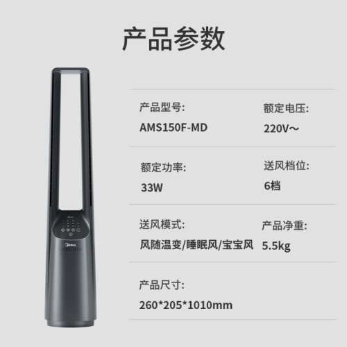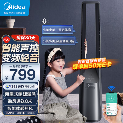 当前的位置: 首页 > 今日值得买 > 美的(Midea)【智能语音操控】遥控风随温变无叶风扇家用塔扇电风扇母婴扇变频落地扇摇头定时宿舍扇AMS150F-MD