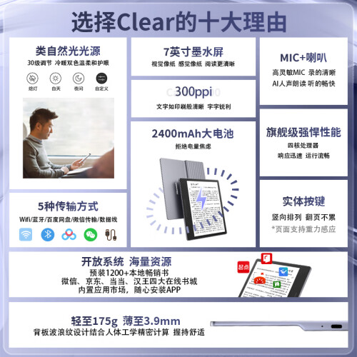 当前的位置: 首页 > 今日值得买 > 汉王(Hanvon) Clear 7英寸电子书阅读器平板 墨水屏电纸书电子纸 看书学习便携阅读办公电子笔记本