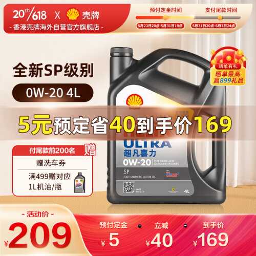 当前的位置: 首页 > 今日值得买 > 壳牌(Shell)API SP 超凡喜力 全合成机油 灰壳 Ultra 0W-20 4L香港原装进口