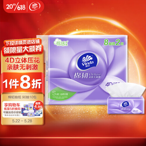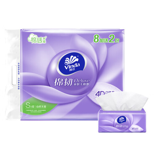 当前的位置: 首页 > 今日值得买 > 维达(Vinda)抽纸 棉韧90抽*10包S码 亲肤无刺激 卫生纸 纸巾 餐巾纸