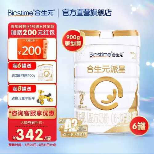 当前的位置: 首页 > 今日值得买 > 合生元(BIOSTIME)【官方】派星A2版较大婴儿进口配方奶粉2段6-12月 900g*6